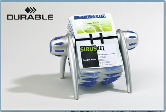 【DURABLE】デュラブル ロータリー名刺入れ VISFIX ビジフィックス 【事務用品】【オフィス 文房具】【デザイン文具】価格: 6,699円レビュー評価: 0.0 レビュー数:0 サイズ:幅215×奥行185×高さ120mm重さ:732g 材質:プラスチック(高品質コーティング)収容枚数:両面に入れて400枚備考:インデックスはアルファベットと日本語(50音)付属 デュラブルの商品を見る ●名刺整理用品の一覧を見る デュラブルのロータリー名刺入れ VISIFIX - ビジフィックス ドイツのDURABLE(デュラブル)製、ロータリー名刺入れ「VISIFIX - ビジフィックス」です。回転式の名刺入れではローロデックスが有名ですが、このデュラブル社のビジフィックス、かなりスタイリッシュです。標準で付いているスリーブは200枚、名刺を両面に入れると400枚も収納できます。名 |