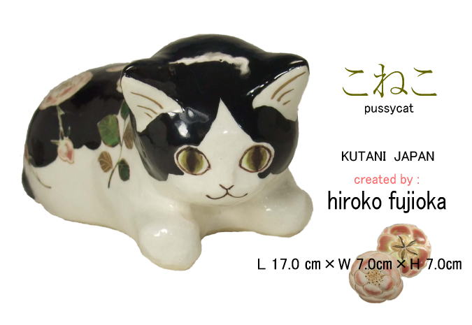 【九谷焼】陶製の子猫の人形藤岡展子猫置物「こねこ」価格: 15,000円レビュー評価: 0.0 レビュー数:0 ■「こねこ」のできるまで 【成型】‥ 石膏型に陶土を押しこんで一匹ずつ丁寧に作ります。乾燥させて形を整えたら素焼きをします。白化粧を施し、釉薬をかけて高温で本焼きをします。これで猫の白い素地ができあがります。 【色付け】‥ 焼きあがった素地に顔や花文様を描いていきます。花は本金で輪郭を描き、九谷のガラス絵具で中を埋めていきます。描いている時はグレーの砂のような色をしていますが、窯で焼きつけると溶けて発色しガラスのように美しく輝きます。 ■藤岡展子 作陶歴 1973 千葉県船橋市に生まれる 1998 日本大学卒業 2001 石川県立九谷焼技術研修所入学 2002 山岸大成氏に師事 2003 第1 |